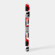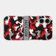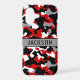 Customize this red, black, gray and white camouflage iPhone 17 case with your name in a trendy modern CAP font in black on gray. It's masculine and perfect for your favorite military, hunting, country or outdoorsman!