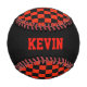 Add a little whimsy to your next practice, with this unique red and black baseball. A red and black chequered pattern decorates one section of the baseball, with solid black, on the other side. Personalize the red text to read what you want. Makes a great gift idea.