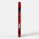 This phone case has a red and black design on it.