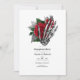 Whimsical vintage floral skeleton hand gothic couples shower invitation in accents of black and red customizable to your event specifics.