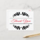 Say Thank you with style! This charming thank you postcard features a black floral leaf frame with a contrasting vibrant red thank you greeting highlighted against a crisp white background.