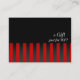 Gift Certificate - Beautiful upscale design featuring a red stripe design pattern on a rich black background. Makes a great gift certificate for beauty salons, spas, cosmetologists, nail salons, dance studios, boutiques, designers, hair and fashion stylists, retail professionals, apparel shops, etc... ⭐This Product is 100% Customizable. Graphics and text can be deleted, moved, resized, changed around, rotated, etc... ⭐99% of my designs in my store are done in layers. This makes it easy for you to resize and move the graphics and text around so that it will fit each product perfectly. ⭐ (Please be sure to resize or move graphics if needed before ordering) You can also "TRANSFER DESIGN" on other Zazzle products and adjust the design to fit most of Zazzle items. (button is down on the right side of the page) Some of the text graphics have ready to fill in the box(es) or you can Click on the "CUSTOMIZE" button to add, move, delete, resize, background colour or change any of the font or graphics. The design is made with high resolution vector and/or digital graphics for a professional print. ⭐NOTE: (THIS IS A PRINT. All zazzle product designs are "prints" unless otherwise stated under "About This Product" area) The design will be printed EXACTLY like you see it on the screen and on the product...so please make sure when you do your changes on the resizing of any of the graphics or text that it fits in the areas correctly and that your spelling and wording is how you like it to be in size, colour and font. If you have any questions about the "DESIGN ONLY" or need help please contact me at my direct email - siggyscott@comcast.net or visit my store link: http://www.zazzle.com/store/designsbydonnasiggy (Copy and Paste) I'll be happy to help. ⭐ ALL OTHER QUESTIONS (such as the shipping, a refund, the printing is incorrect, or the product itself, etc...) PLEASE CONTACT ZAZZLE OR THE MAKER ⭐DIRECTLY⭐. Thank you for the support and stopping by my store - DesignsbyDonnaSiggy. © Donna Siegrist⭐⭐⭐ ZAZZLE promises 100% satisfaction.