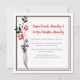 This reception-only wedding invitation features a modern, minimalist design with soft romantic accents. A clean white background is framed by a subtle double border in red and black, while a graceful botanical illustration rises along one side with slender black stems and delicate red leaves. Elegant script typography is paired with classic serif text, creating a refined and easy-to-read layout. The overall palette of red, black, and white feels polished and contemporary, making this invitation ideal for a stylish, reception-focused celebration. Personalize with your own information.