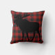 This is a red and black 16" x 16" polyester throw pillow with a moose silhouette.