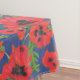 Red and Black Oriental Poppies Pattern on Blue Tablecloth
