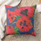 Red and Black Oriental Poppies Pattern on Blue Throw Pillow