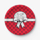 Red and Black Polka Dot White Bow Personalized Paper Plate