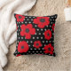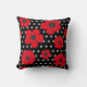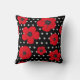 Red and Black Poppy and Polka Dot Pattern Throw Pillow
