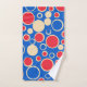 Bath Towel Set Of 3 bathroom amenity and casual fun home furnishing decor accessory printed with Red And Blue Dots On Blue creamy tan natural wood colour background artwork design illustration by TheFabricSeal at Zazzle. #ZazzleMade https://www.zazzle.com/store/thefabricseal