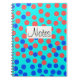 Stylish turquoise notebook or journal with a red and blue dots print, hand painted design. The label text is customizable. Created with a smile by iolantesdesigns :-)!