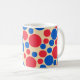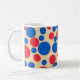 Classic Coffee Tea Mug beverage drinking cup printed with Red And Blue Dots On Tan creamy tan natural wood colour background artwork design illustration by TheFabricSeal at Zazzle. #ZazzleMade https://www.zazzle.com/store/thefabricseal