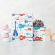 Red and blue coloured guitars decorate this fun paper perfect for any occasion.