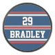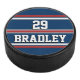 Sports jersey style athletic stripe design in patriotic red, white and blue. Add your hockey team number and last name to customize.