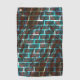 Red and blue stained stamp, with scratches, grid or different brick wall effect with blue stain on brick joint.