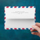 Red and Blue Striped Airmail A6 Envelope with return address. If you might like a different colour scheme please email paula@labellarue.com before you customize or place an order so a new template can be created for you.