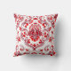 Red and Burgundy Damask Floral Pattern Elegant Throw Pillow