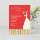 An elegant bridal shower invitation for the modern bride featuring a bride with flowers on a red background and colourful stripes at the base. Available in alternate colours. Please contact us if you are looking for another colour combination. Matching thank you cards, favours and postage also available.