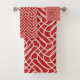 Red And Cream Abstract Line Pattern Bath Towel Set