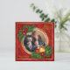 A luxurious Christmas card with a round photo window framed with gold scallops and trimmed with clusters of pine, poinsettia and ornaments. The background is a red on red argyle pattern. (<a href='http://www.freepik.com/free-photo/parents-with-a-dog-and-a-baby-with-a-christmas-tree-background_979458.htm'>Designed by Freepik</a>). (<a href='http://www.freepik.com/free-vector/christmas-background-with-flowers-and-baubles_984449.htm'>Designed by Freepik</a>). <br/><br/>The card is easy to customize with your wording, font, font colour, paper shape options and choice of six paper types.<br/><br/>Not exactly what you're looking for? All our products can be custom designed to meet your needs at no extra charge.<br/><br/>Simply contact us at heartfelthelper@gmail.com<br/><br/>Coordinating products available: Just ask us!