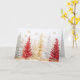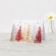 red gold Christmas trees, snowflake design, white background art, festive holiday trees, sparkling snowflakes, Christmas forest decor, gold foil trees, winter scene art, cheerful holiday design, snow-covered trees