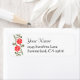 Une étiquette d'adresse de retour personnalisée avec des lettres de script et des lettres standard et de l'art vintage des marguerites et des feuilles de curling en rouge et en or, restauré à partir d'un manuscrit antique.