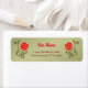 Étiquette d'adresse de retour personnalisée avec écriture rouge et rouge foncé et lettres standard centrées entre l'art vintage des marguerites et la décoration de curling en rouge et or sur un arrière - plan doré, restauré à partir d'un manuscrit antique.