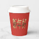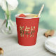 Chinese New Year Greeting Xīnnián hǎo in Mandarin, Faux Gold Text, Festive Red Background, Party Paper Cups, choose with or without lid
