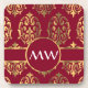 Red and gold monogram damask pattern coaster