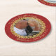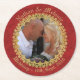 Regal red and gold Wedding party coasters to personalize with your own photograph and text. Rich textured looking red background with an ornate gold frame and text surrounding your image.
