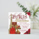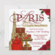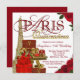 Paris Quinceanera invitation with beautiful gold Eiffel Tower, elegant Paris gift packages, gold glitter high heel shoes and fancy red Paris script on a rich black and red rose background. This beautiful Paris Quinceanera invitation is easily customized for your event by simply adding your details in the font style and colour, and wording of your choice. This is a printed design with no real diamonds, jewels, glitter, etc.