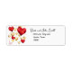 Bold red hearts with swirls are forward facing on the front of this valentine, anniversary or special occasion return address labels meant for anyone. Gold hearts dangling from gold string rest behind the red hearts. Perfect for important family and friend events, occasions, celebrations and holidays. Enjoy!