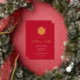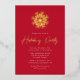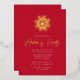 Modern foil holiday party invitations featuring a gold foil snowflake at the top of the design with a festive red background. "Holiday Party" is displayed in a handwritten gold foil script. Personalize the foil snowflake holiday party invitations with your party details in white lettering.