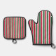 Red and Green Candy Cane Christmas Stripes Oven Mitt & Pot Holder Set