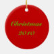 A ceramic fleur de lis Christmas ornament. On the front, a Christmasy green and red plaid background, with a red fleur de lis design. The back is solid red, and we added the text "CHRISTMAS 2010". You can keep that text or remove it, OR you can change it by typing in your own text! It's customizable that way. Makes a great holiday gift, or looks beautiful on your Christmas tree or Christmas packages.