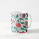 This is a colourful watercolor vintage floral pattern with red flowers and green leaves on a white background.