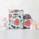 This is a colourful watercolor vintage floral pattern with red flowers and green leaves on a white background.