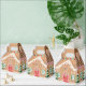This cute gingerbread house gable box will make packaging up your holiday treats even more fun! The favour box is all decked out for Christmas with lots of candy and white icing details! The back side has a place to personalize with your name. Colours include red, green, brown and white.