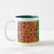Antique inspired red and green tile art with a fleur de lis pattern. You pick the mug size and colours or add your own text.