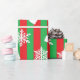 Red and Green Holiday Mittens and Christmas Hats and Snowflakes Wrapping Paper