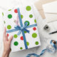 Featuring cheerful red and green dots on a crisp white background, this paper adds a joyful, modern twist to traditional Christmas gift wrapping.