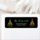 This elegant and chic return address label features a red and green ribbon Christmas tree with a star topper. The text combines handwritten script and modern sans serif fonts for a classy and sophisticated look. The falling snow, snowflakes and sparkles give a festive and magical touch. This is perfect for Christmas and the holiday season.