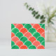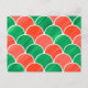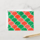Send festive Christmas postcards featuring rows of painted alternating red and green scales with white borders. The interlocking shapes form diagonals of colour across the geometric pattern. Paint strokes are visible in the red and green fan shapes and show variations in the colours.