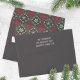 This design features a Christmas, red and green envelope, with the return address printed on the back flap, a simple rustic, basic typography, classic trendy, simple and minimalist, with a modern, festive fun, and elegant pattern