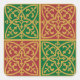 Red and Green Tile Art on Gold Pattern Square Sticker