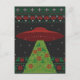 Red and Green UFO Tractor Beam Ugly Christmas Postcard