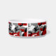 This is a heavy, durable bowl decorated with Tibbies of many colors, the perfect size for hungry/thirsty Tibs. The design is interesting and printing clear.