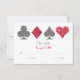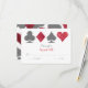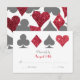 This wedding invitation reply card features elegant typography and card suits graphics in grey and cherry red faux glitter. Perfect for a Las Vegas wedding in a little chapel off the strip, all you need is love and a witness or two!