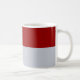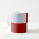 Two red rectangles and two grey rectangles form a chequered pattern in this clean graphic design.