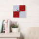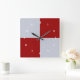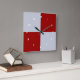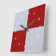 Two red rectangles and two grey rectangles form a chequered pattern in this clean graphic design.