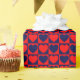 A wrapping paper built with a red and navy blue chequered pattern with hearts. Customize the navy blue background colour among several options.